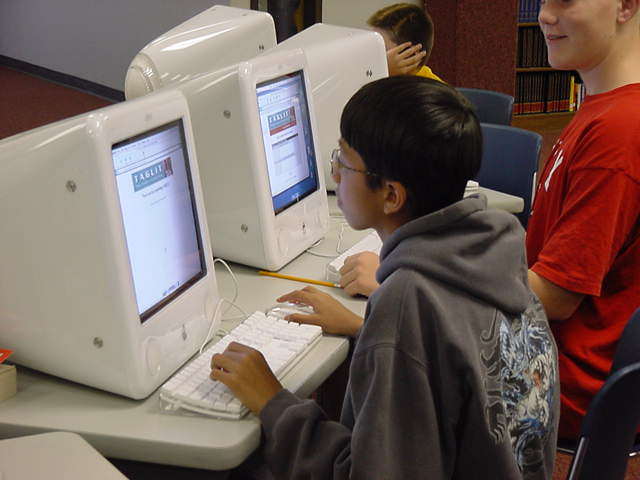 7th Grader, Anthony Prohaska works on the new E Mac's.