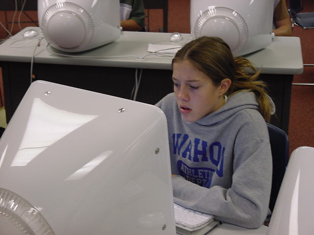 The Middle School received a new computer lab this year, which features Apple's new E Mac computers. The new computers have a large 17 inch monitor, and use the newest Mac OS X operating system. The computers have 128 MB of memory, and use an 800 MHz, Power PC G4 processor.