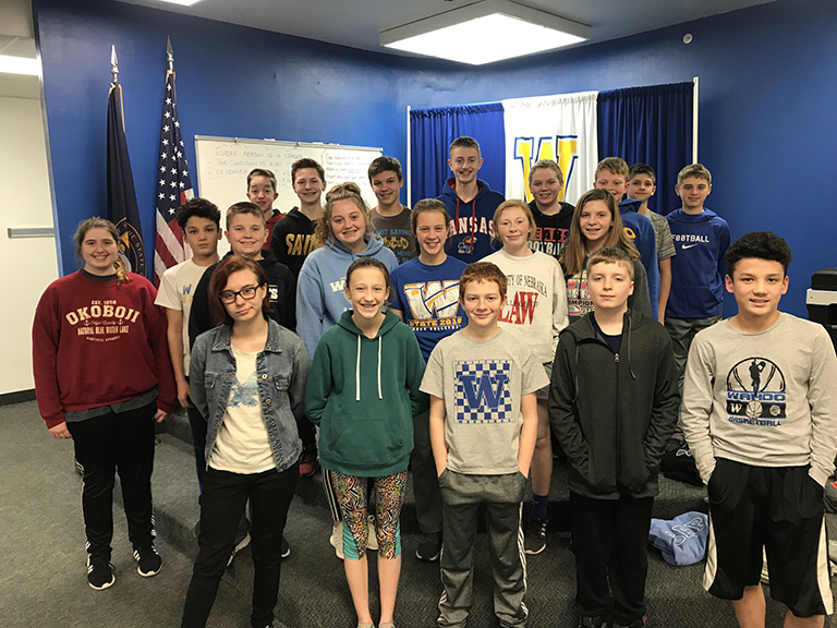8th Grade: Chloe Aldrich, Jacob Andresen, Piper Bewley, Trevor Bohaty, Jenna Borrenpohl, Damien Bragg, Sophia Brennan, Kasen Bunjer, Tianna Coffey, David Divis, Aspen Eckley, Trevor Ehrlich, Katie Elder, Easten Faris, Zach Fox, Brandon Greenfield, Owen Hancock, Ethan Havlovic, Ryan Johnson, Sarah Kolterman, Griffin Lausterer, Myranda Lihs, Marisol Marquez, Benji Nelson, William Nielson, Logan Ourada, Esmerala Perez, Jaiden Powers, Dawson Rafteseth, Jozef Sommer, Kailey Strait, Markael Zeleny